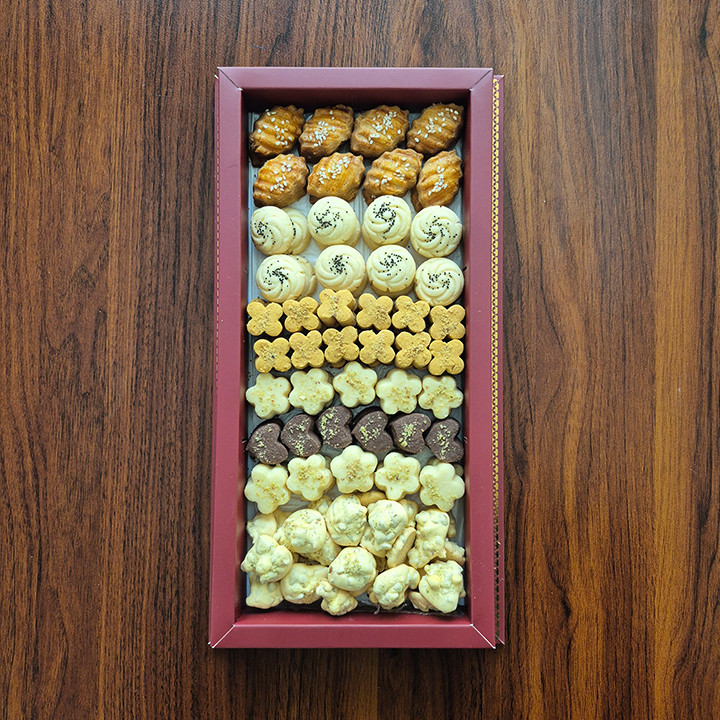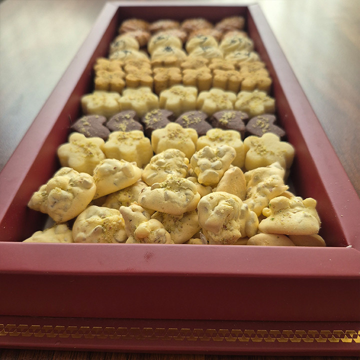 شامل: شیرینی نخودچی، برنجی گردویی، شکوفه وانیلی، شکوفه شکلاتی، نان چایی
